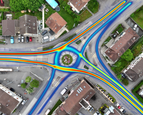 Unsere Drohnenaufnahmen, zeigen, dass der markierte Innenring beim Kreisel Orpund in Biel oft überfahren wird. Die Daten liefern wertvolle Grundlagen für neue Verkehrsicherheitsmassnahmen.